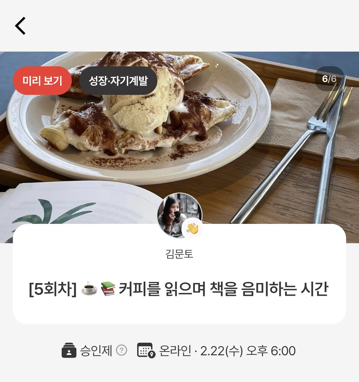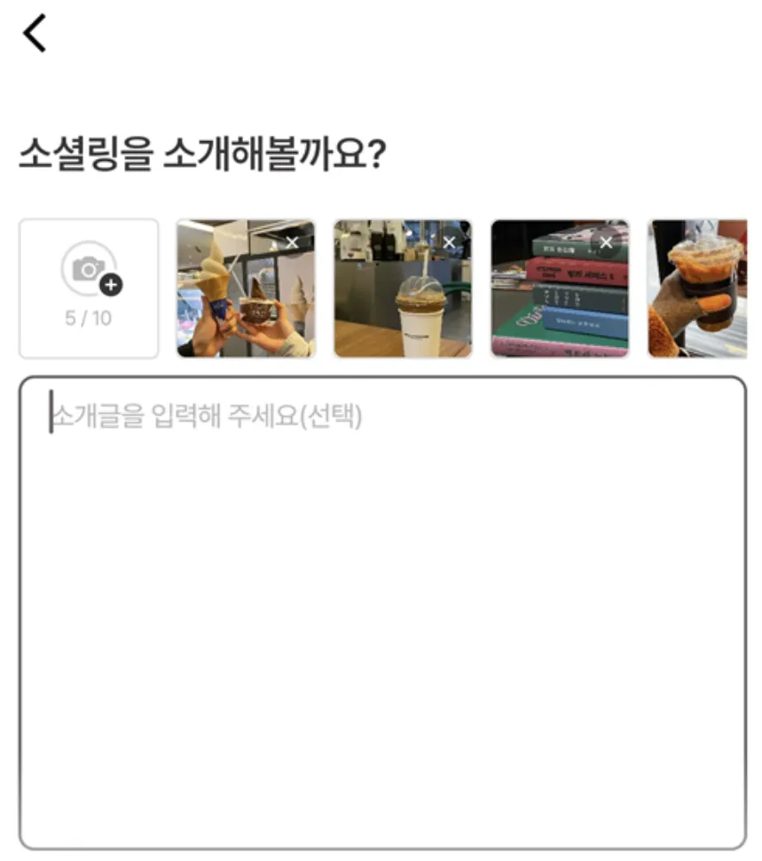 상세 내용에 이미지를 최대 10장까지 추가할 수 있어요. 문토 멤버분들이 소셜링에 대해 더 잘 알 수 있도록 이미지를 여러 장 추가해 보세요!