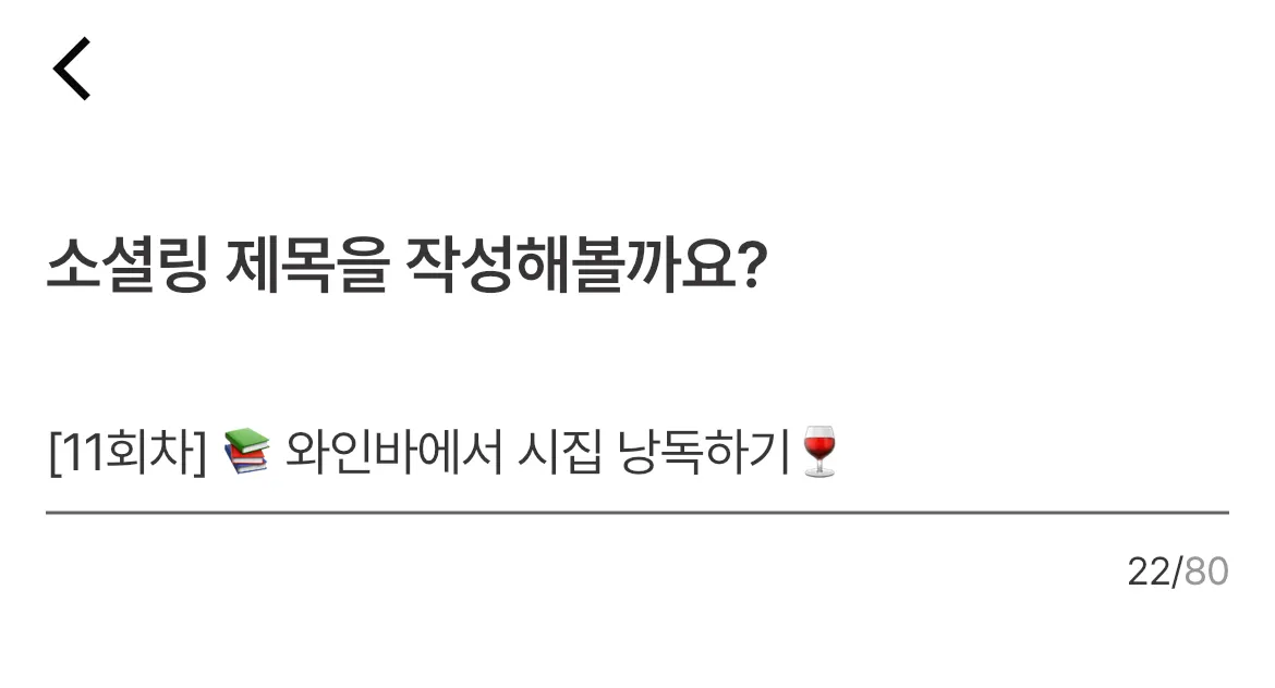 문토 멤버분들 중 73.8%가 제목 맨 앞에 진행된 회차를 넣은 소셜링이 더 이목을 끈다고 답변했어요. (ex. [8회차] 해방촌에서 시그니처 칵테일 한 잔?