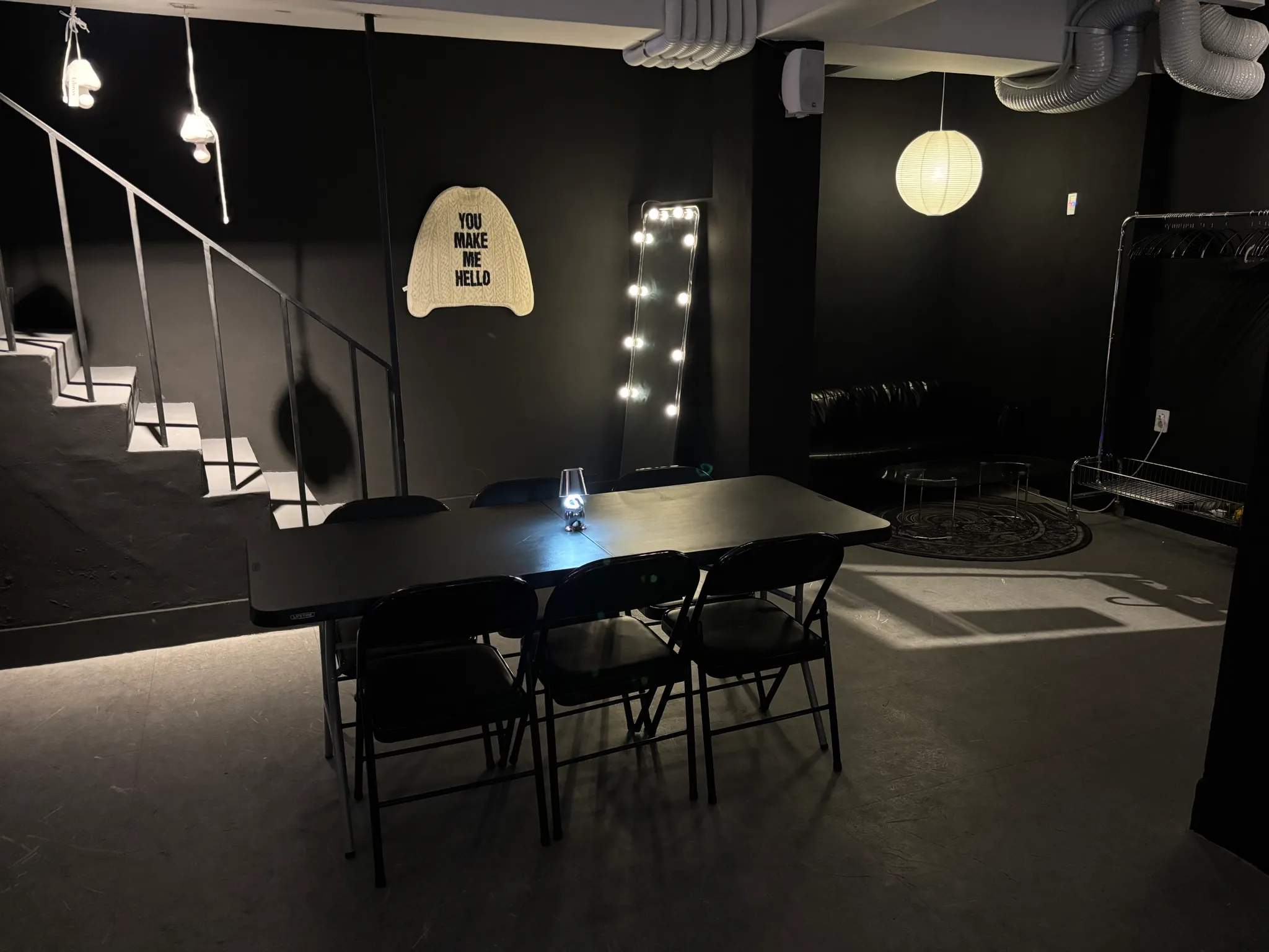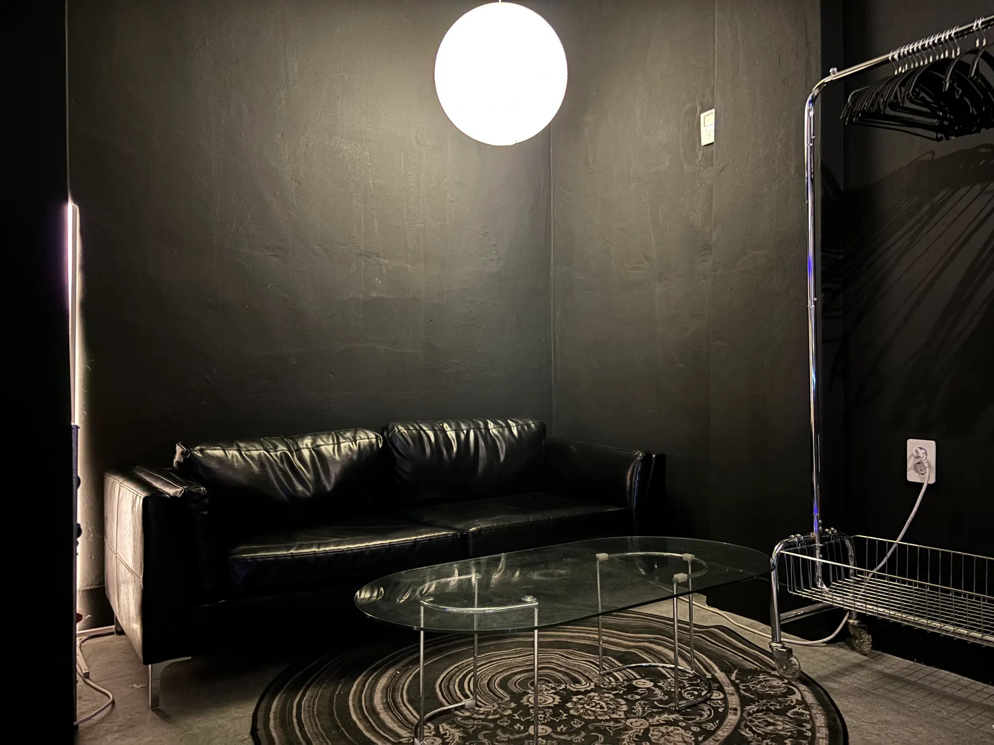 공간 전체가 블랙 + 무드 라이팅으로 꾸며져 있어요