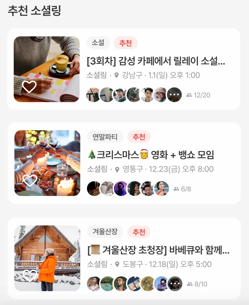 문토의 대표 호스트인 셀렉티드 호스트들의 모임은 [추천 소셜링] 섹션 에서 확인할 수 있어요