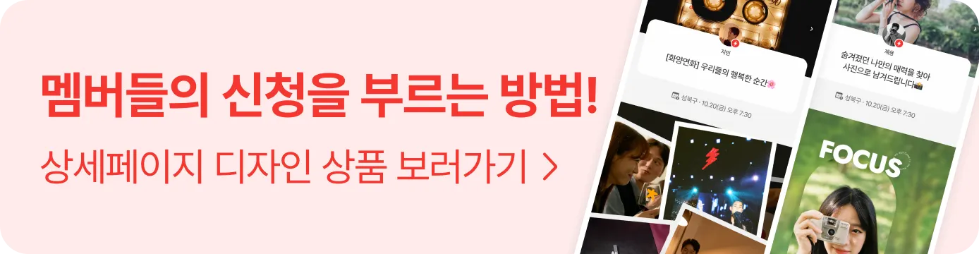 모임이 노출되는 지면이 늘어날 뿐 아니라, 기획전을 소개하는 앱 전체 푸시 메시지도 주기적으로 발송되는 만큼 모임을 더욱 효과적으로 홍보할 수 있겠죠?